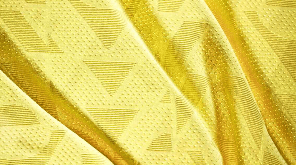 除了帮助排汗和身体降温外,这种面料还允许在球衣上加入浮雕设计。登蒂解释道:“最大的挑战之一,实际上是把巴西最核心的元素提炼出来放在球衣上。因为我们不想让黄色这个核心元素被分散注意力,通过Aero FIT技术,我们可以在面料结构中融入任何设计。这次我们加入的设计元素是巴西国旗上的几何图形,它同样标志性、易于辨认,而且非常美。我们把它做成了动态的图案,近乎一种催眠般的律动,让球员和球迷在代表我们的国家时,真正穿上这件球衣,披上巴西国旗。”