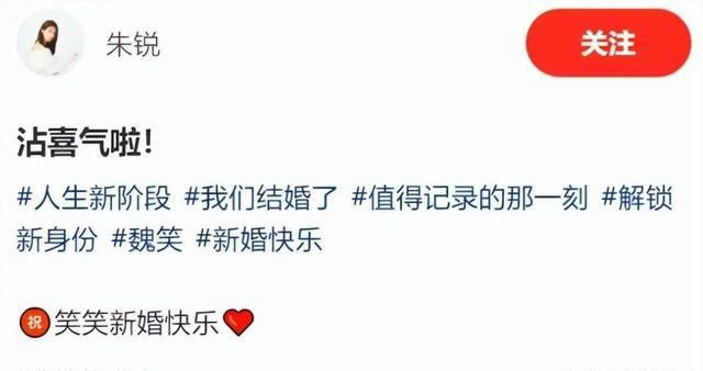 此次魏笑官宣结婚,圈内好友也纷纷送上祝福,朱锐等艺人留言感慨“要沾喜气”,网友们更是刷屏“新婚快乐”“百年好合”,祝福这对低调相恋多年的恋人,也为这份纯粹的闺蜜情感动。在娱乐圈中,有人追逐流量名利,有人坚守真心热爱,魏笑不仅收获了势均力敌的爱情,还有不离不弃的友情,无疑是人生赢家。
